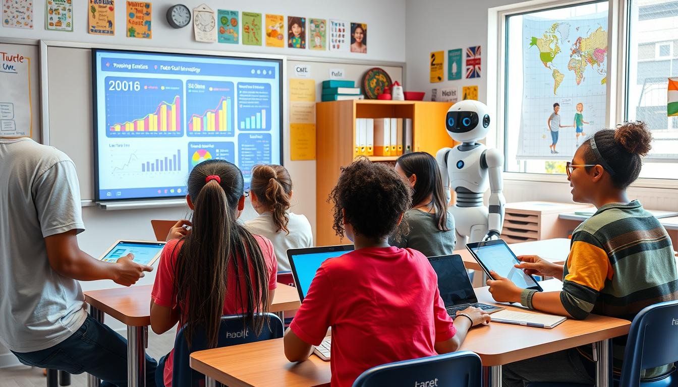 The role of AI in education is huge. It’s key to making learning fair and accessible for all. By embracing AI, we can help our students and teachers succeed.